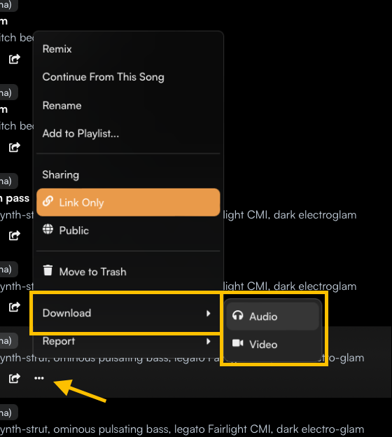 click the […] button next to the clip and select Download, then choose Audio or Video: